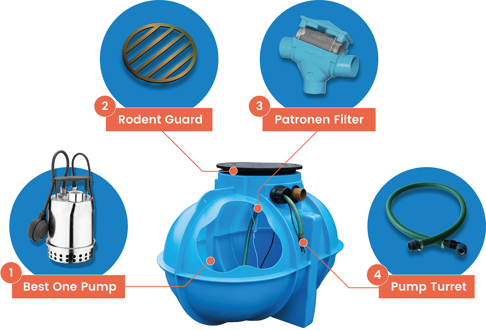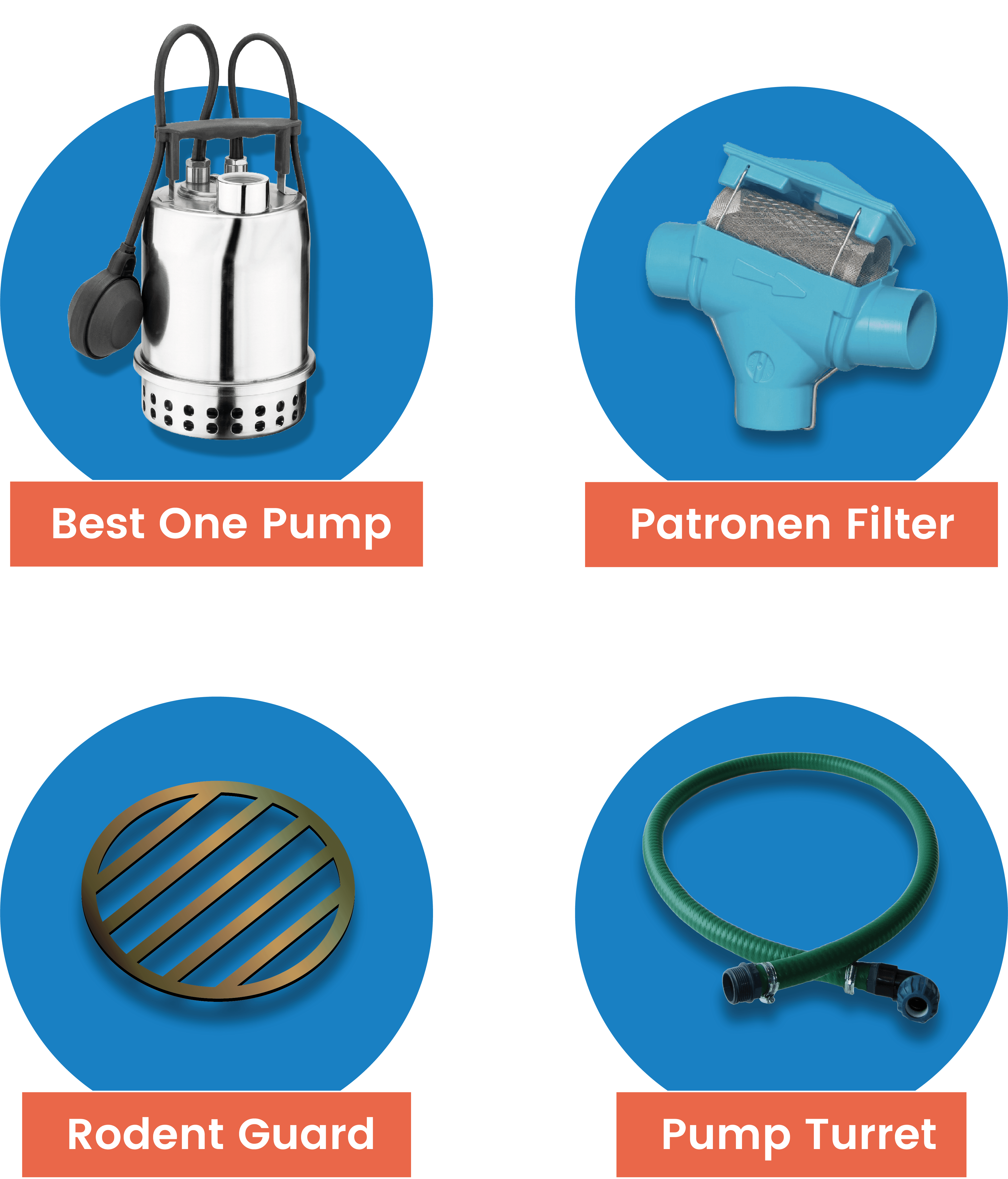 The 140 pump turret is a flexible plastic connection between the pump and access port allowing smooth flow of the pumped water out towards the application